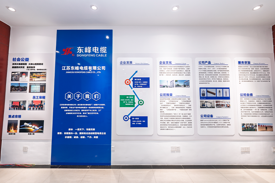 Jiangsu Dongfeng Cable Co., Ltd., založená v roku 1988, je národný high-tech podnik integrujúci výskum a vývoj, výrobu a predaj rôznych typov drôtov a káblov. Spoločnosť bola uznaná ako a „Národná zelená továreň“, „Špecializovaný a inovatívny podnik v provincii Ťiang-su“, „Podnik kvality a integrity v provincii Ťiang-su“, „Úverový podnik AAA“ a „Národný podnik pre spokojnosť používateľov“..